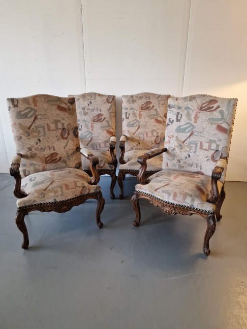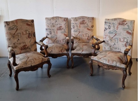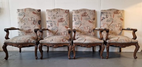 4 lieli krēsli ar skaistiem kokgriezumiem.