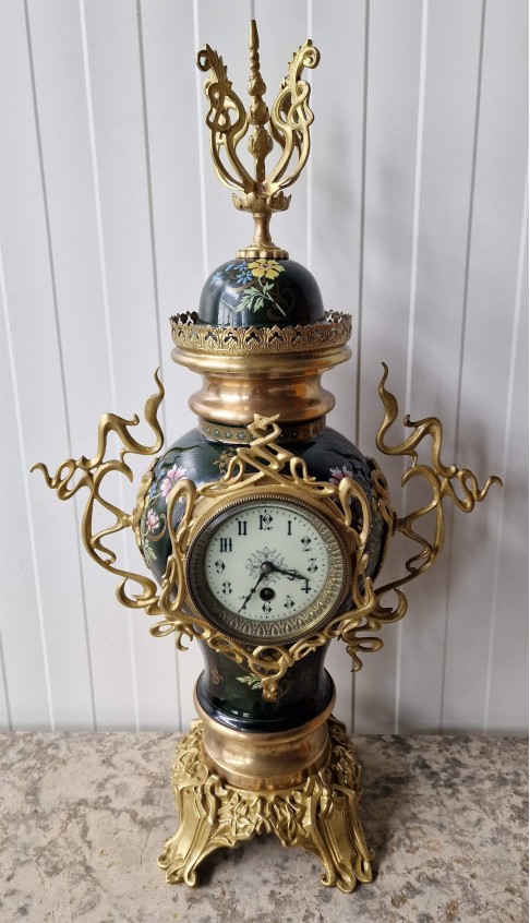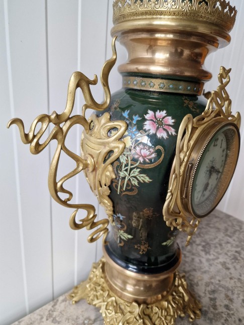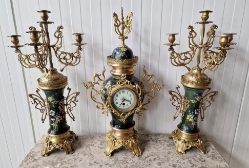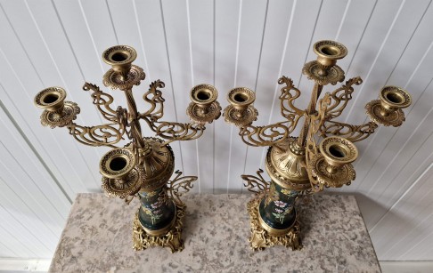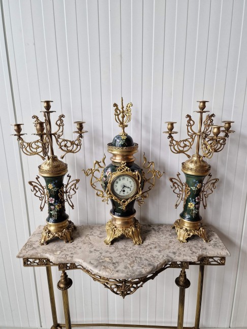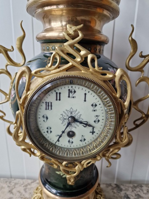 Ļoti skaists Art nouveau stila pulkstenis ar svečturiem