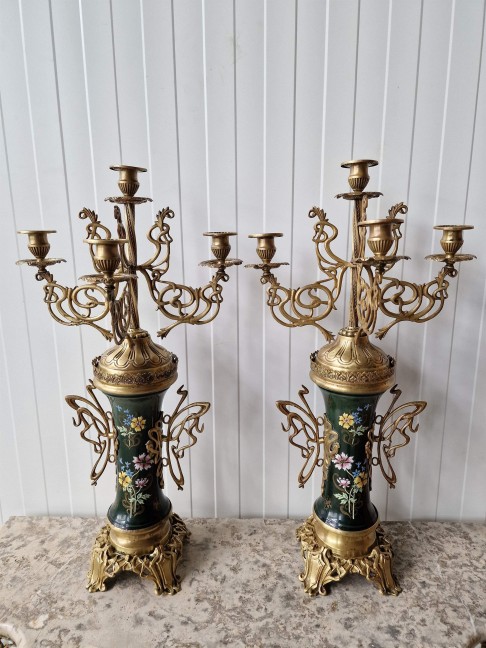 Ļoti skaists Art nouveau stila pulkstenis ar svečturiem.