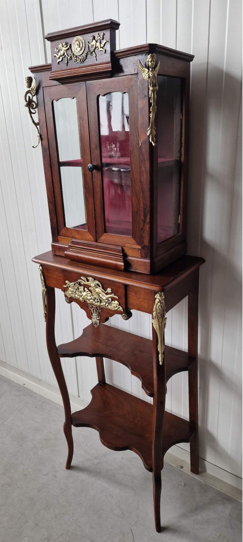 Restaurēta antikvāra vitrīna ar skaistiem bronzas elementiem.
