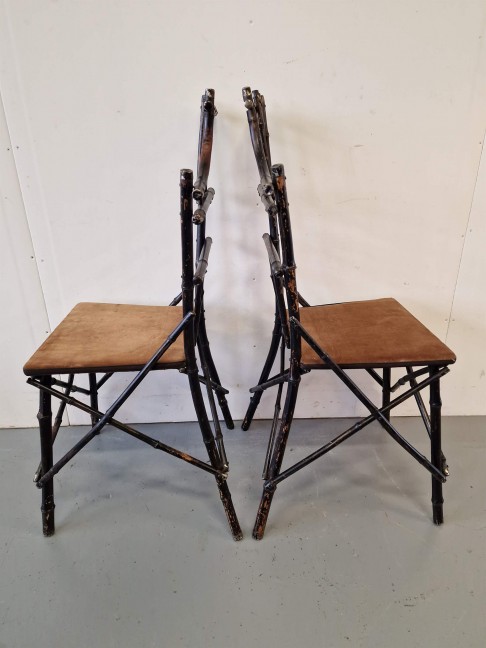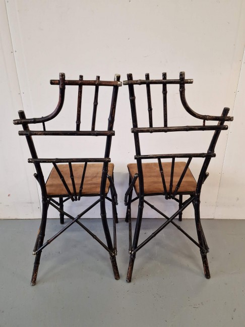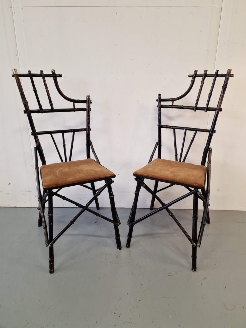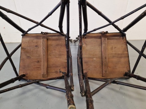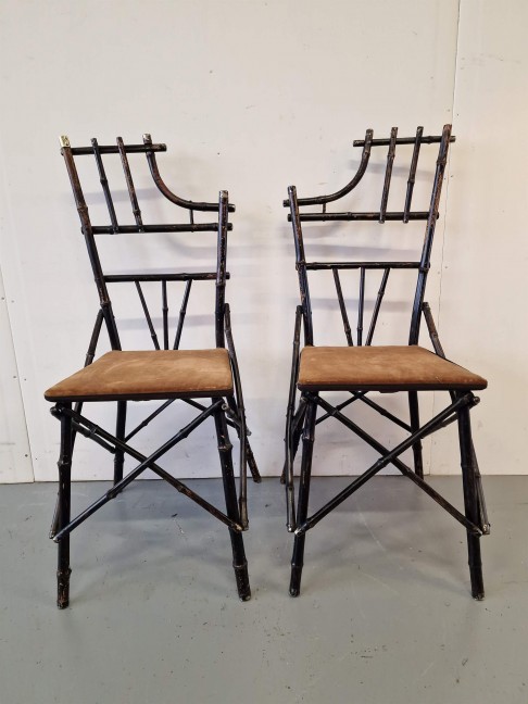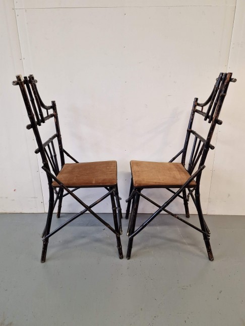 Viktorijas laika ceļojumu bambusas krēslu pāris.